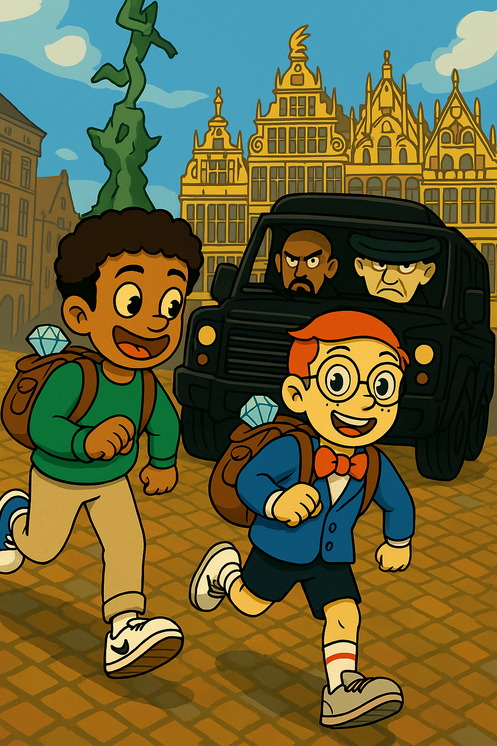 For i lufthavnen bytter de ved et uheld taske med nogle gangstere. I stedet for træningstøj finder de en kuffert fyldt med diamanter og dollarsedler. Og så starter en hæsblæsende jagt gennem Antwerpens gader, hvor de må bruge både statistik, logik og hurtige ben for at narre de kriminelle og redde sig selv.