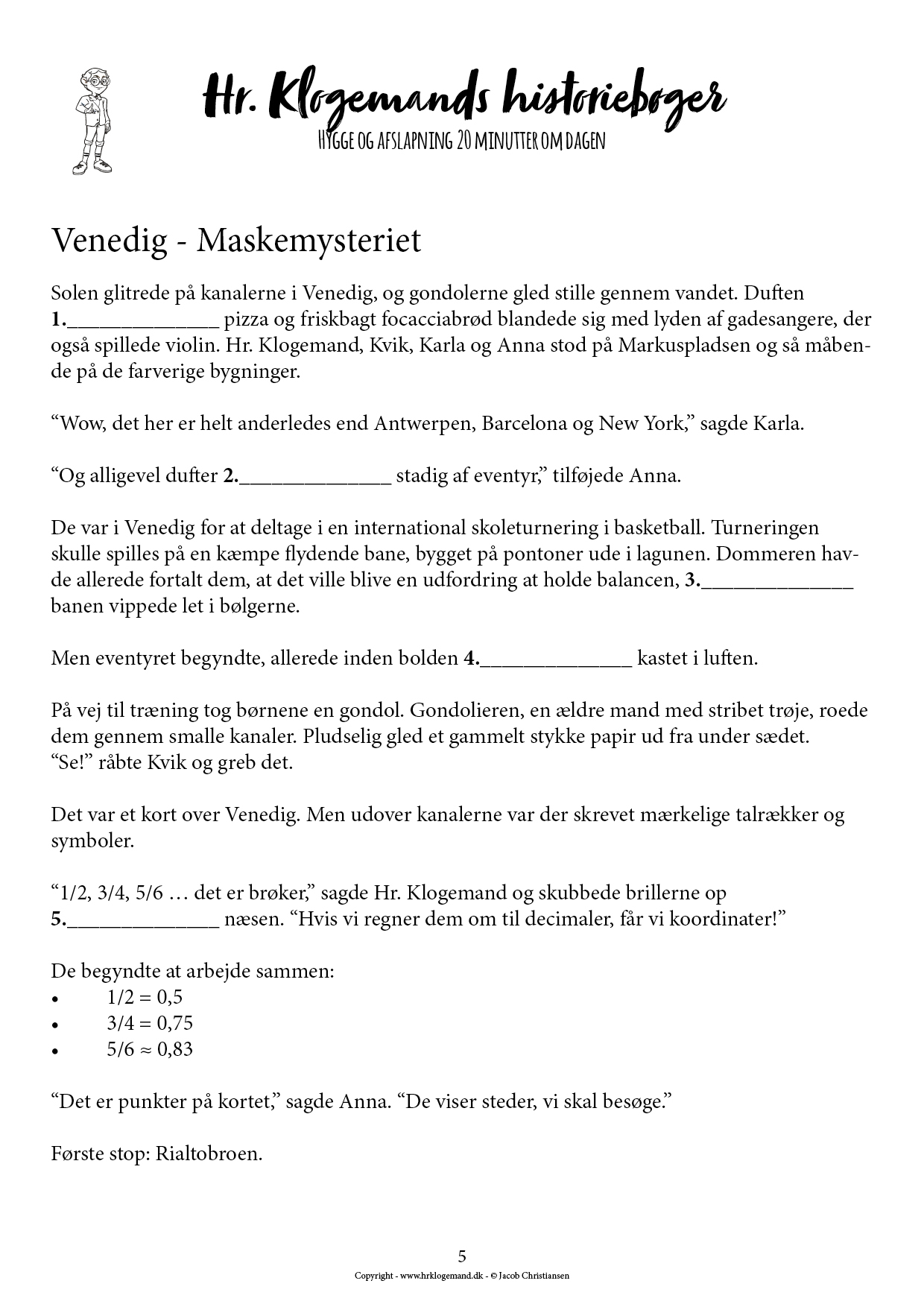 Er du på udkig efter en sjov og lærerig historiebog (LIGHT UDGAVE) til dit barn? “Hr. Klogemands historiebøger #4 – Venedig – Maskemysteriet – LIGHT UDGAVE” for børn er den perfekte løsning! Denne unikke historiebog kombinerer kreativ farvelægning, masser af de 120 ord, matematik, tabeller samt historier om vennerne Hr. Klogemand, Karla, Anna og Kvik der tager en tur ud i verden. Denne gang er de taget til Venedig i Italien for at hjælpe politiet.