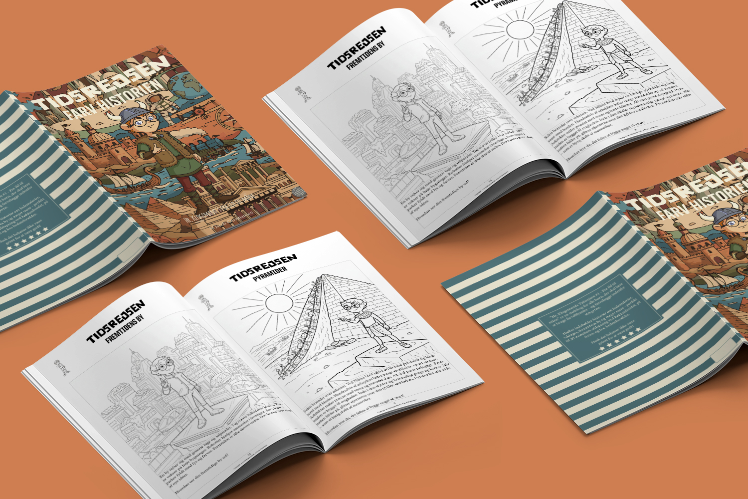 Er du på udkig efter en sjov og lærerig malebog til dit barn? TIDSREJSEN om historien fra ild til måne er den perfekte løsning! Denne unikke malebog kombinerer kreativ farvelægning med spændende små historier som Hr. Klogemand oplever. Denne gang handler det bl.a. om HULEMALERIER, PYRAMIDER, ANTIKKENS BY og helt frem til FREMTIDENS BY.